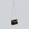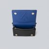 Black quilted bag in anapada cowhide with removable chains in gold free. Round carabiner. Interior lined in the same leather in a royal blue tone. It incorporates a card holder and an interior compartment with a zip closure. Magnetic bag closure. Measurements: 13cm high x 20cm long x 7cm deep. Made in Spain.